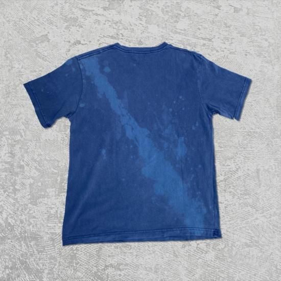 インディゴ染したTシャツにタイダイ柄のブリーチを施したもの。